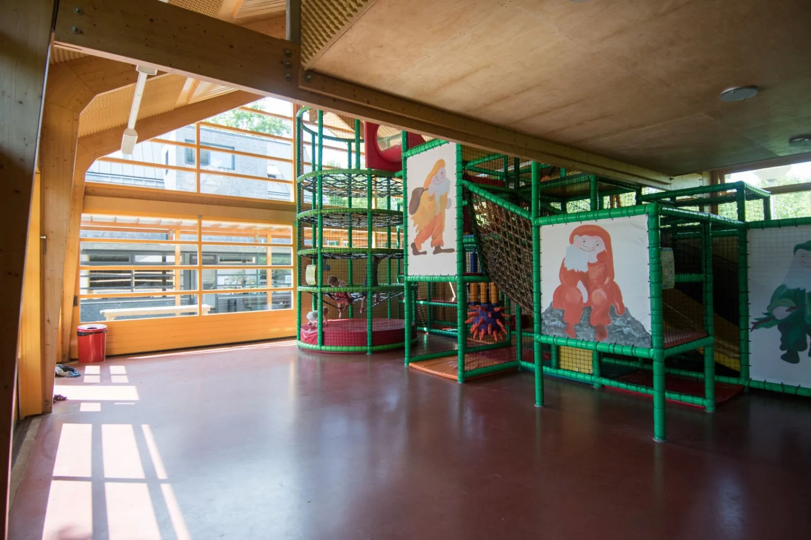 Binnenspelen in een speelparadijs op de camping